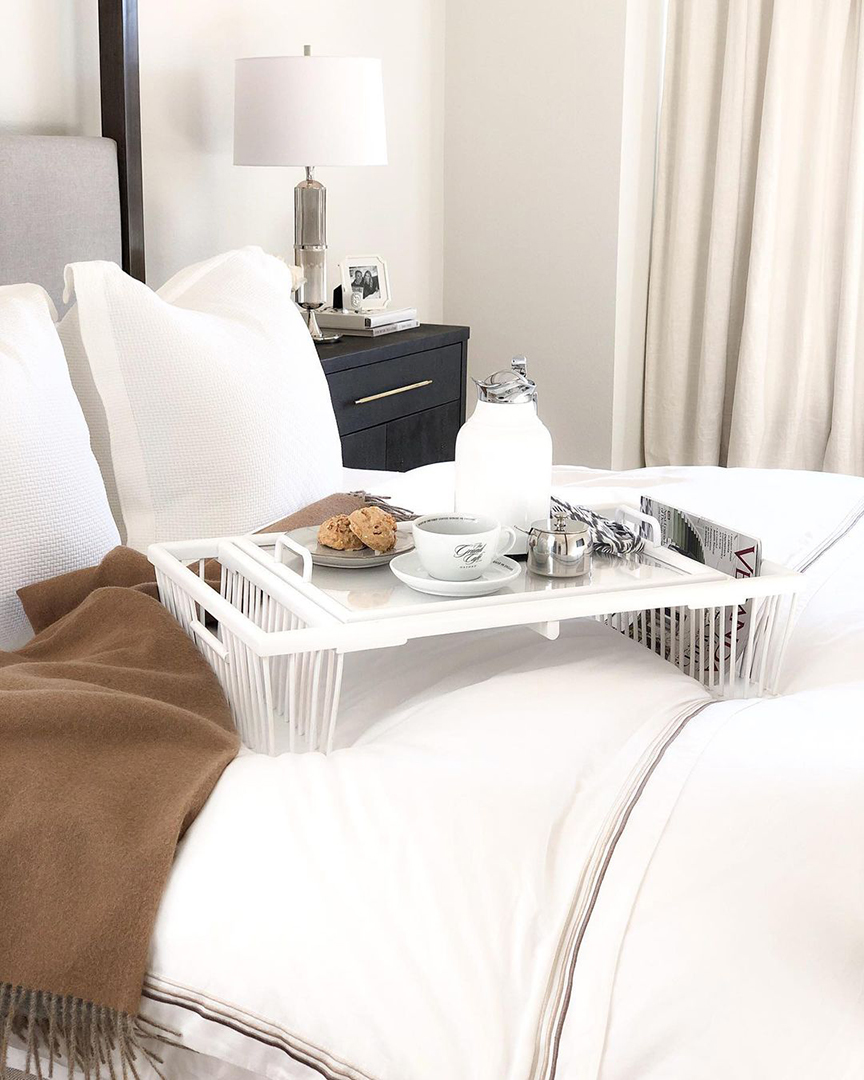 This gracious wooden breakfast tray sold exclusively at Scully & Scully is something your guests or kids home from school will love. Imagine bringing up coffee and breakfast in bed on their first day at your home, an unexpected gesture to get everyone in the spirit of celebration. It has a stain-resistant acrylic upper tray that detaches and a tray underneath, as well as sides to hold favorite newspapers and magazines.