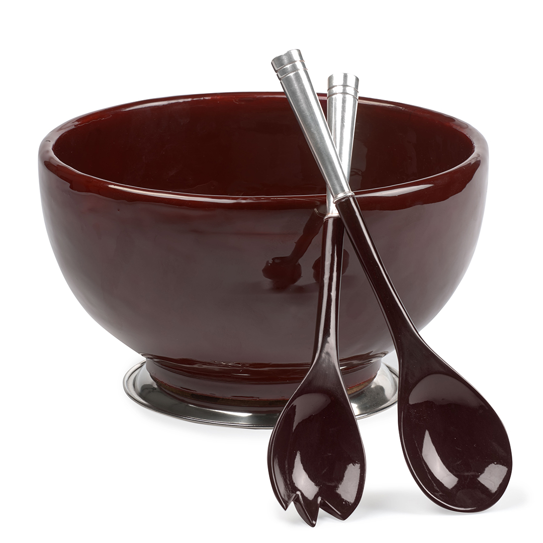 Everyone needs a go-to salad bowl for casual or formal occasions, so this piece would be an enduring gift to yourself or others. The handmade wooden salad bowl, exclusively at Scully & Scully, is dressed with a silver-plated bottom and exudes subdued sophistication. Matching the bowl, its salad servers are complete with sterling silver handles. The bowl and servers are sold separately.