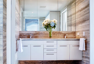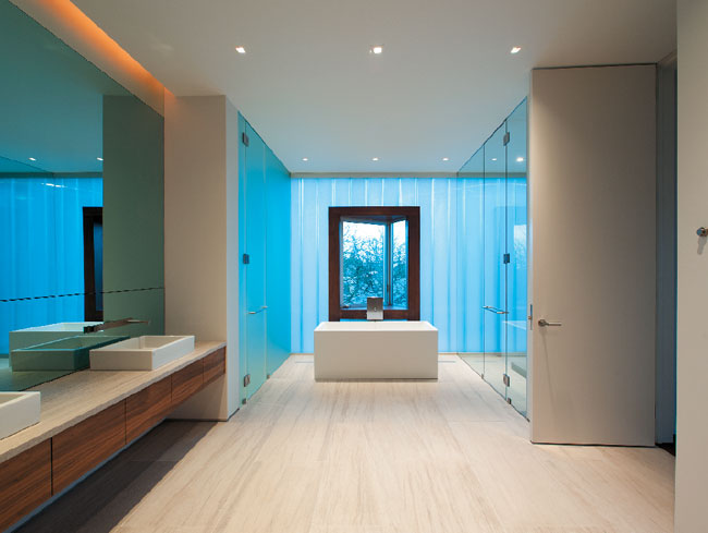 Stelle Architects’ design for this beach house’s master bathroom proves that minimalism can have a maximum effect. The design goal for this north-facing room,