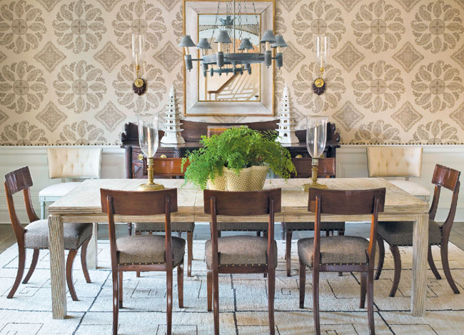 How do you make the interiors of a decidedly traditional home stand out without them seeming overdone? In this luxurious East Hampton house enhanced with expertly articulated period detailing, James Michael Howard layered a variety of pale hues—whites, off-whites, taupes, beiges, creams—so that every room takes on keen visual interest. Pattern also plays a strong role in the decorating scheme, along with textured headboards, stunning antiques, and furniture arrangements that make residents and guests want to linger. Perhaps the best way to describe these interiors is that they’re timeless. As judge Scott Sanders says, “This home will still look great in 15 years.”