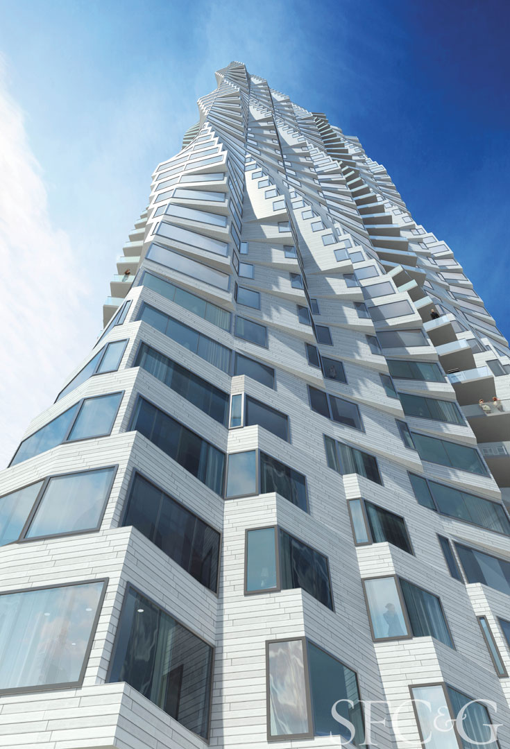 The rendering of 160 Folsom bears a nodding resemblance to Aqua, but the pattern is quite different. Can you talk about how you arrived at the two designs?