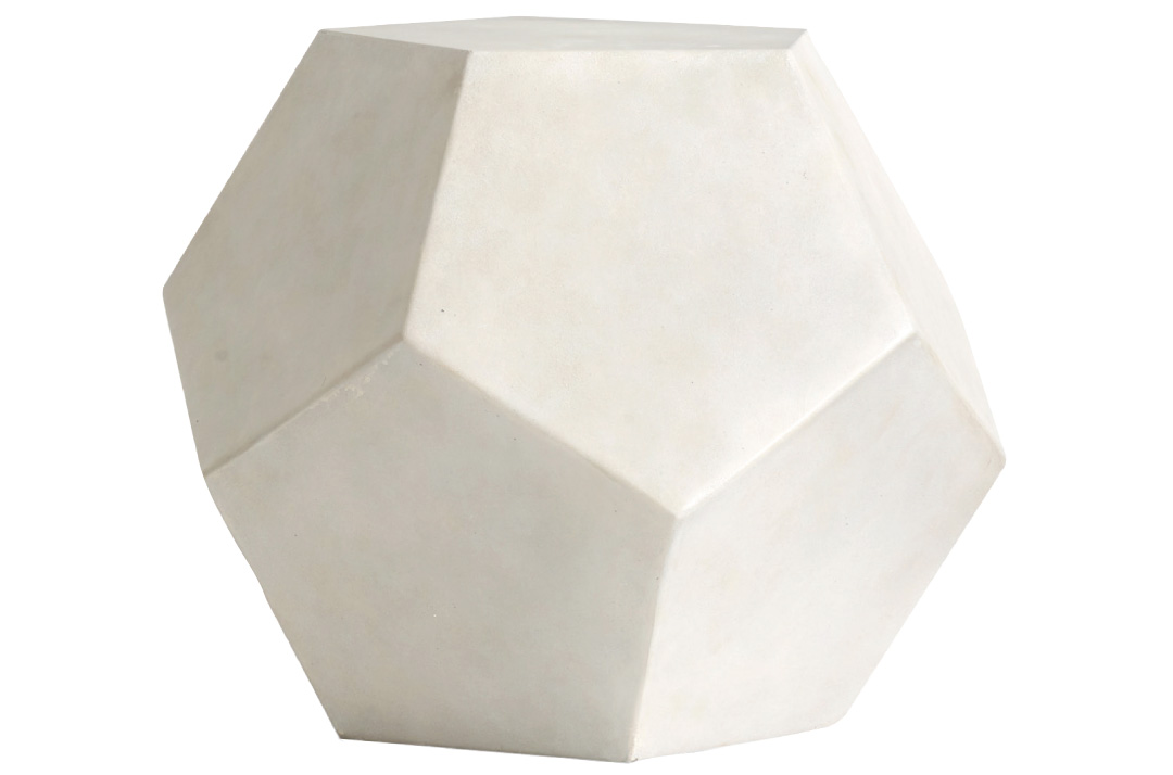 Made of concrete, the Dodecahedron side table is a multifaceted addition to your outdoor decor. $374, at Pottery Barn, 1 Hampton Rd., Southampton, 631-283-0141.