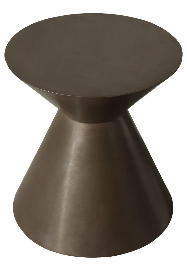 The hourglass-shaped, brass-colored Castelo stool does double duty as a simple side table. Also available in white and black. $650, at Restoration Hardware, 69 Main St., East Hampton, 631-907-1300.