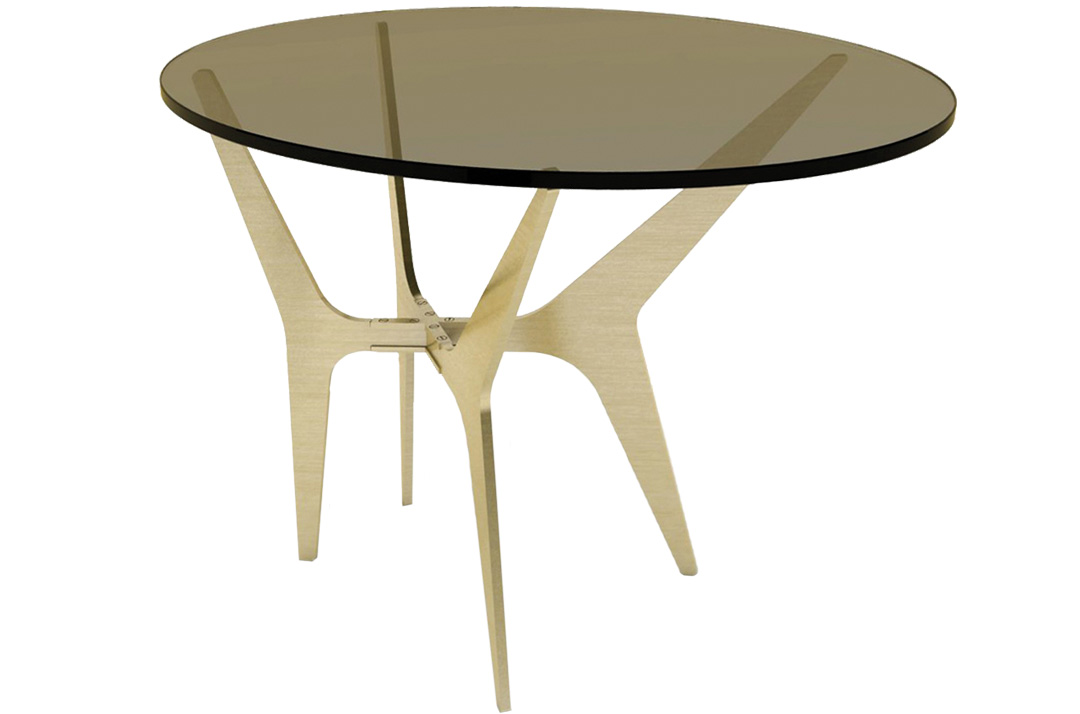 Design duo Gabriel Scott drew inspiration from midcentury modern design when creating the Dean side table. The translucent smoked-glass top gives way to the sculptural base, available in black steel with brass hardware, all brass (shown) or all copper options. Starting at $1,350.