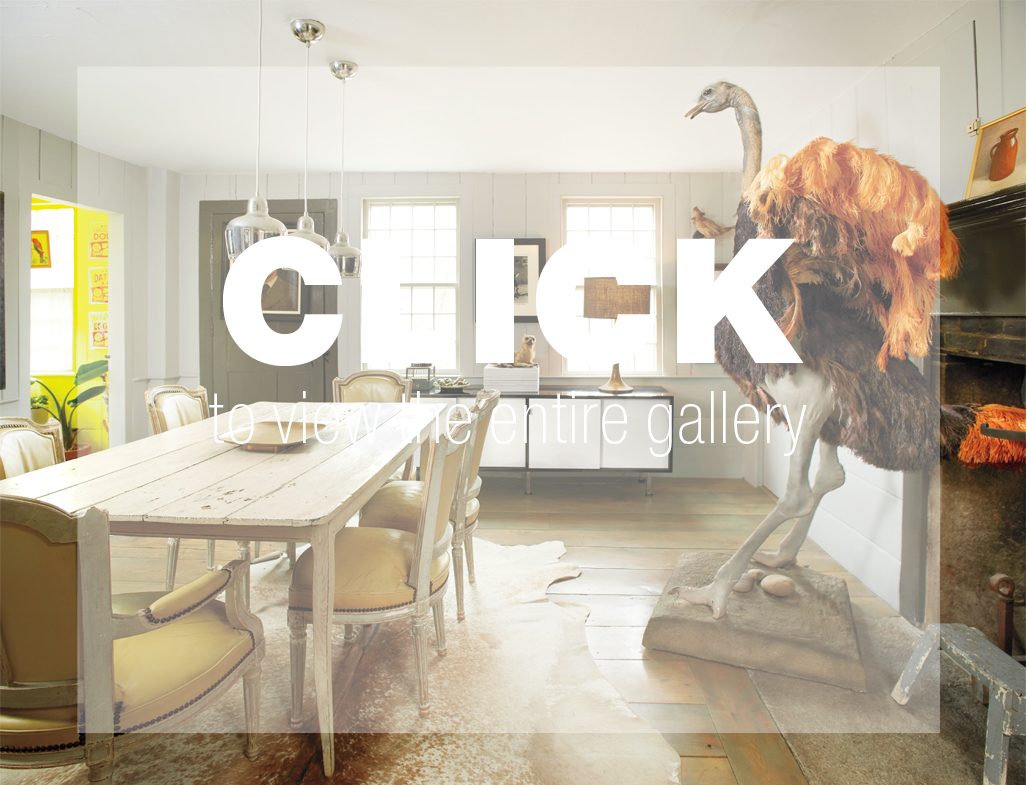 Of the ostrich, which stands, rather alarmingly, on a plinth beside their dining room fireplace, Odom says, “I bought it at an auction in Miami and just liked the way the animal looks.” About that taxidermied bird, which dates from the 1920s, Gerson adds, “Let’s just say that when guests see it, it always elicits a response, the most common one being how it’s a rather ‘unexpected’ detail.” Indeed, the couple’s home is filled with life, albeit some of it stuffed. “I want to stress that these are all antiques,” notes Odom. “We think of the animals we have as being very happy things, not scary things.”