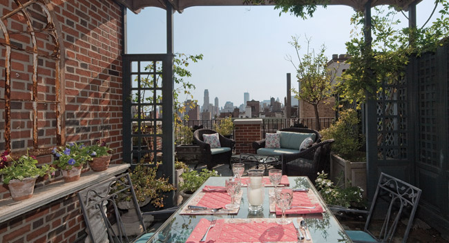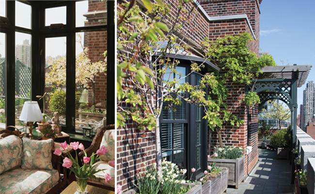 Visible from almost every room, the terrace garden designed by Halsted Welles Associates is approximately two thousand square feet and wraps around the apartment, affording ample space for repose and private outdoor living.
