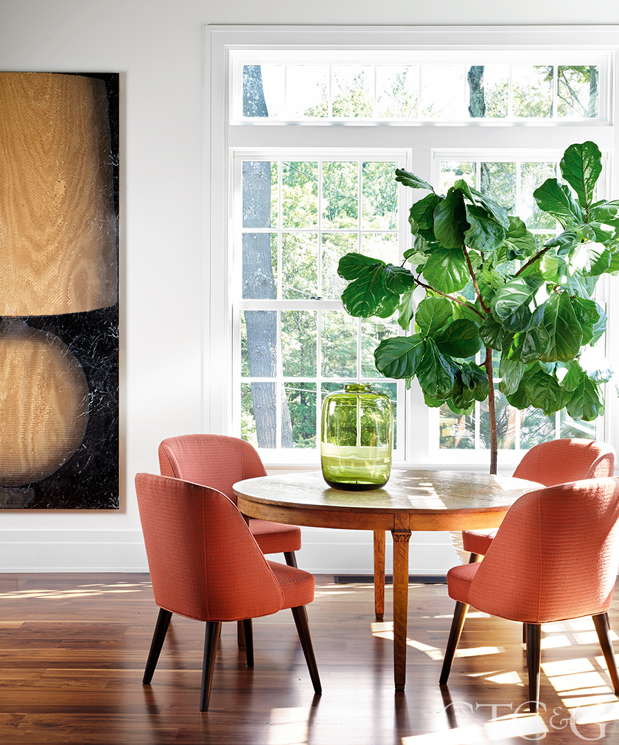 Adds the client: “We have a 3,200-square-foot multipurpose room. Everyone can be together without feeling overcrowded—someone can watch football on the south side while someone is playing pool or sitting in a corner reading a book, and on the north side, people are working in the kitchen. It’s not overly done, but it’s elegant and comfortable. It’s a great place for kids and dogs—and adults who never grew up.”