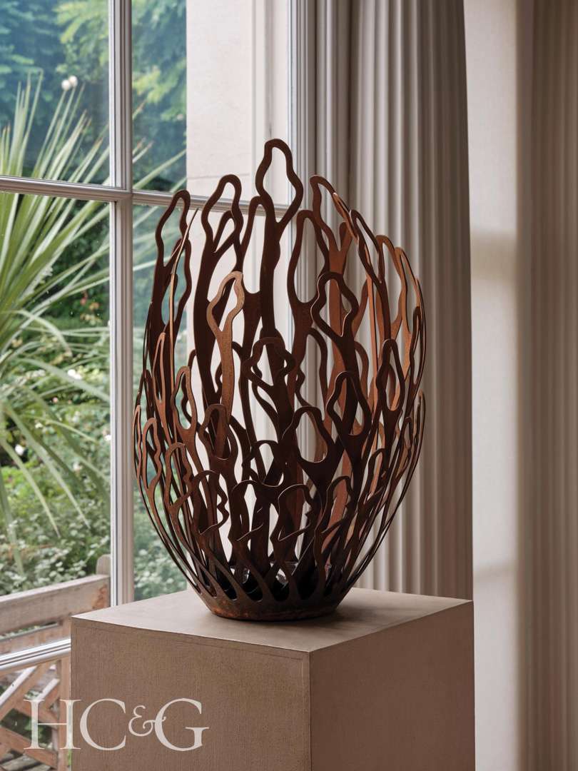 David Harber’s new sculpture, Alba, is inspired by the fragile beauty of coral. Alba’s organic shape is handcrafted from delicate layers that embody the intricate architecture of its natural form. Echoing the lattice metal cutaways that are central to Harber’s core collection, Alba seeks to capture the complex narrative of elegant vulnerability that resonates with the endangered, vital, and unseen ecosystems of our coral reefs.