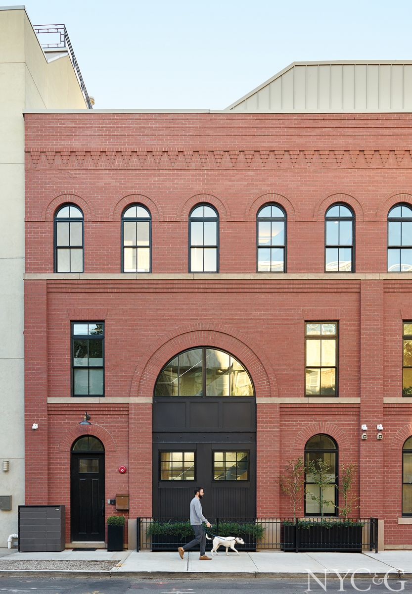 Developers had already razed the lone graffiti-covered warehouse on a rapidly gentrifying block in order to build 3,200-square-foot “carriage houses,” mirror-image edifices joined side by side, like Siamese twins. Tying them further together was architect Meshberg Group’s continuous brick façades, historically correct arched windows, and sunny rear windows overlooking ample backyards. Construction of the shell was well under way when the couple closed on their new digs, even though the interiors were only raw studs, plywood, and temporary stairways. A fortuitous circumstance, as they preferred a blank slate over having to undo standard-issue fittings. “We loved the idea of starting from scratch, with our own vision,” Paindiris says.