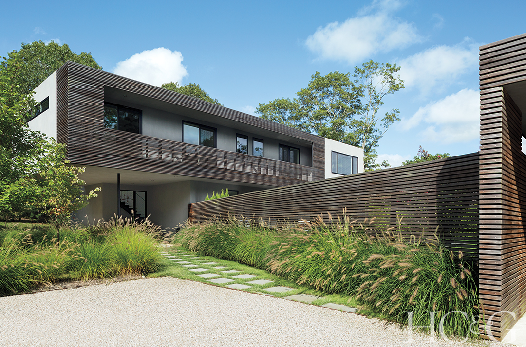 A profusion of eco-friendly native grasses and bluestone pavers connects the garage to the house, both of which are clad in untreated cedar that doesn’t require upkeep. The inviting entryway leads into a spacious open living room, dining area, and kitchen, along with a small office that shares a view of a sancuary-like courtyard, complete with a firepit. As for the decor, “Nothing is precious,” Anna says. “We want to be able to relax and put our feet up. Modern can be cold, and I wanted the home to be warm.”