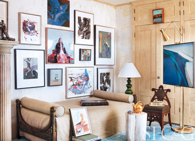 “California’s rugged beauty has long been a source of inspiration for artists, many of whom crafted works en plein air,” says MacCaul Turner of the impetus for his artist’s studio. The designer worked with galleries Lost Art Salon, Dolby Chadwick and Hackett | Mill to curate a collection that captured the spirit of regional landscape painting. Completed with antique furnishings and a paint-splattered floor, it is a space that is all about bohemian chic.