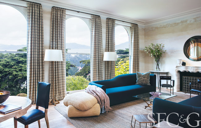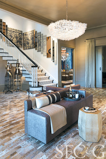 Jonathan Rachman’s fashion-inspired foyer brought glam to this Pacific Heights grande dame. He transformed the entry and stairway of the traditional residence into sexy, monochromatic spaces accessorized with gold, Champagne-and-smoke-tinted mirrors and custom furnishings. Certified Kate Moss–approved.