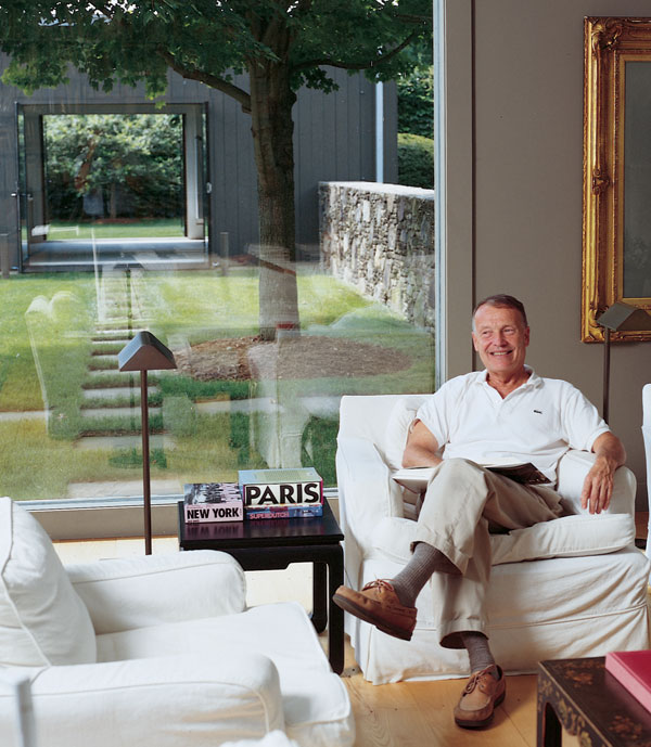 Visiting architect Keith Kroeger’s bucolic Bedford, New York property is a bit like entering a maze. The experience begins at the entry where visitors drive into a courtyard created by a three-car garage and a two-story section of the main house. From there a gate leads to yet another courtyard—there are six in total, defined by the garage, the L-shaped residence, a vine-covered stucco wall and a string of linden trees. Throughout the property, carefully sited walls, archways and doorways mandate meandering.