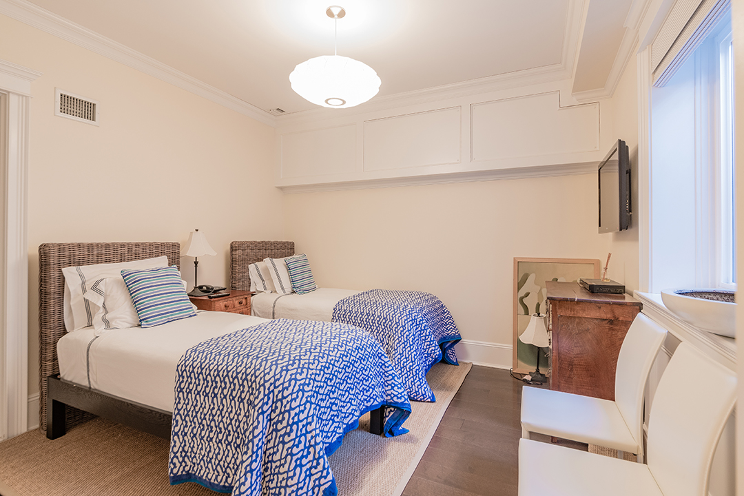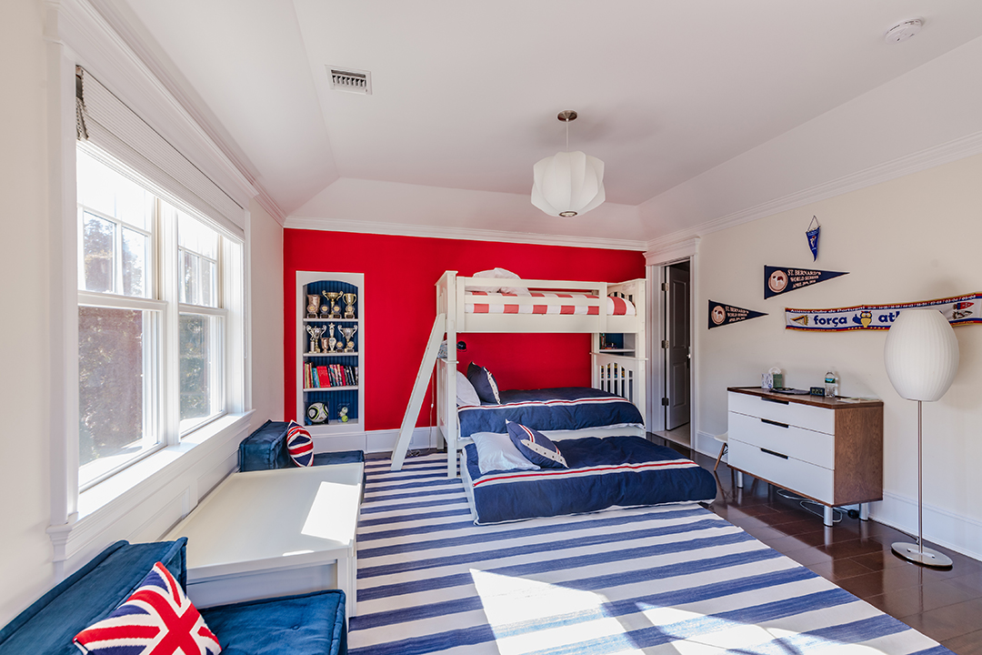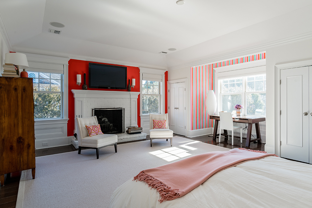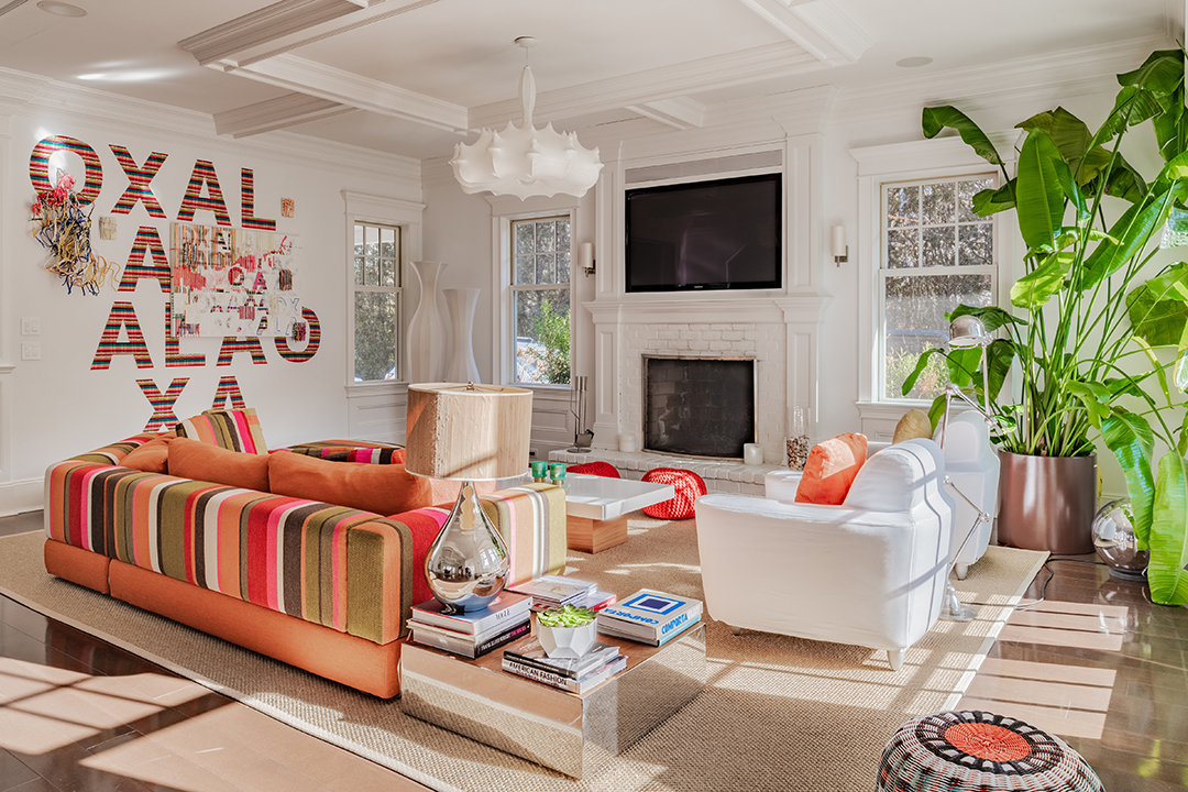 Multimedia artist, Maria Vasconcelos, emphasizes repetition and bold color to create her unique works, which often include text or expressions. Her artistic touch transcends art and stretches to interior design at the places she lives. In Southampton Village, Vasconcelos transformed her stunning home, creating the perfect combination of functionality and beauty. The artist recently listed the eye-catching house for $7.75 million, so buyers better move fast to scoop up the one-of-a-kind abode.The furnishings in this traditional six bedroom home are fun and bright, selected with an artist’s eye. Clean white walls contrast dark floors to highlight Vasconcelos’s very own works of art that give airy spaces pops of color.Within the 5,900-square foot home, a generous kitchen holds plenty of space for the whole guests to gather around the gourmet island and breakfast bar. As all artists know, lighting is everything, and this Hamptons home is flooded with rays. Abounding natural light cascades through vast windows, bouncing off the high ceilings to make rooms look even bigger. Personality is also ever-present as accent walls weave a colorful aesthetic throughout the house.Exquisite French-doors open to the outdoor deck that overlooks the gorgeous, green lawn and lovely landscaping. Entertain friends on the patio before heading over to the gunite pool for a day in the sun. The outdoor space also holds a pool house with a full bath, an outdoor shower, garage, and art studio, adding yet another unique feature to the home.Represented by Michaela Keszler of Douglas Elliman, the artistic and bright home, just a block from Gin Lane beaches, is a designer’s dream.