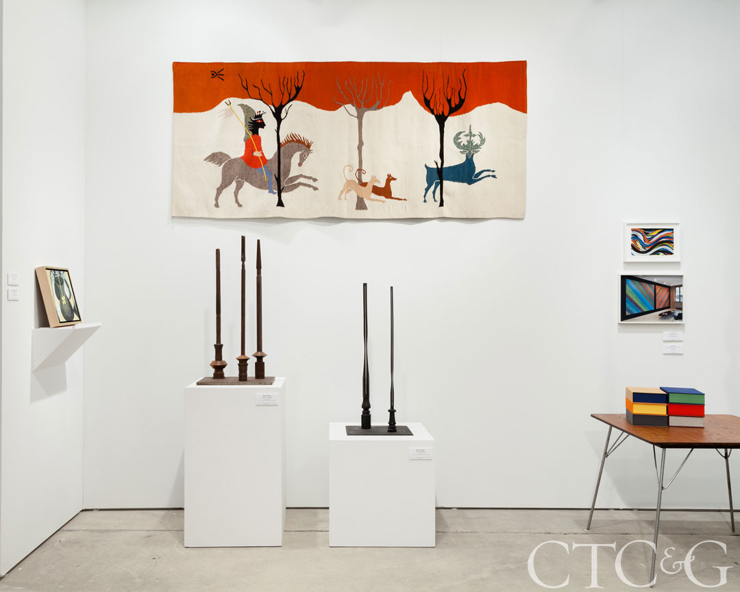 A schlep across the causeways leads to mainland Miami, site of the Design District, museums and even more shows. Installed in the expansive Art Miami tent, Beverly Pepper’s wooden pinnacle sculptures were on display at James Barron Art, which had journeyed down from Kent in Litchfield County. The nearby Pinta show had a Latin American focus: The centerpiece was a racecar that Mexican artisans had encrusted with millions of colored beads.