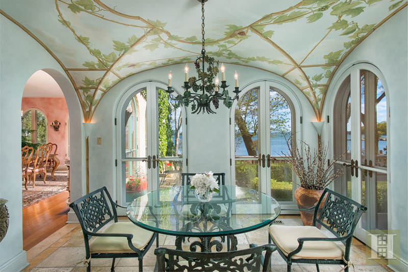 This listing just barely qualifies as an island, accessed via a narrow causeway leading from the mainland in Darien to Delafield Island. The circa-1911, Mediterranean-style manse served since the 1920s as a summer home for Walter Sachs, a grandson of the founder of Goldman Sachs. His estate sold it a couple of decades ago to Eugene Grisanti, a former chief executive of International Flavors and Fragrances, who transformed the nearly 7,500-square-foot, 16-room interiors into his dream of an Italian villa. La-dolce-vita-style features start with the entrance loggia, graced with a fountain. A sweeping staircase leads to a two-story sitting room with a fireplace and a wall of arched doors opening onto a 50-foot-long terrace with views over Scott’s Cove and Long Island Sound. Additional pleasures include 275 feet of private waterfront, a beach, a pool and a deep-water dock. Becky Munro of Halstead Property lists the property for $7,950,000.