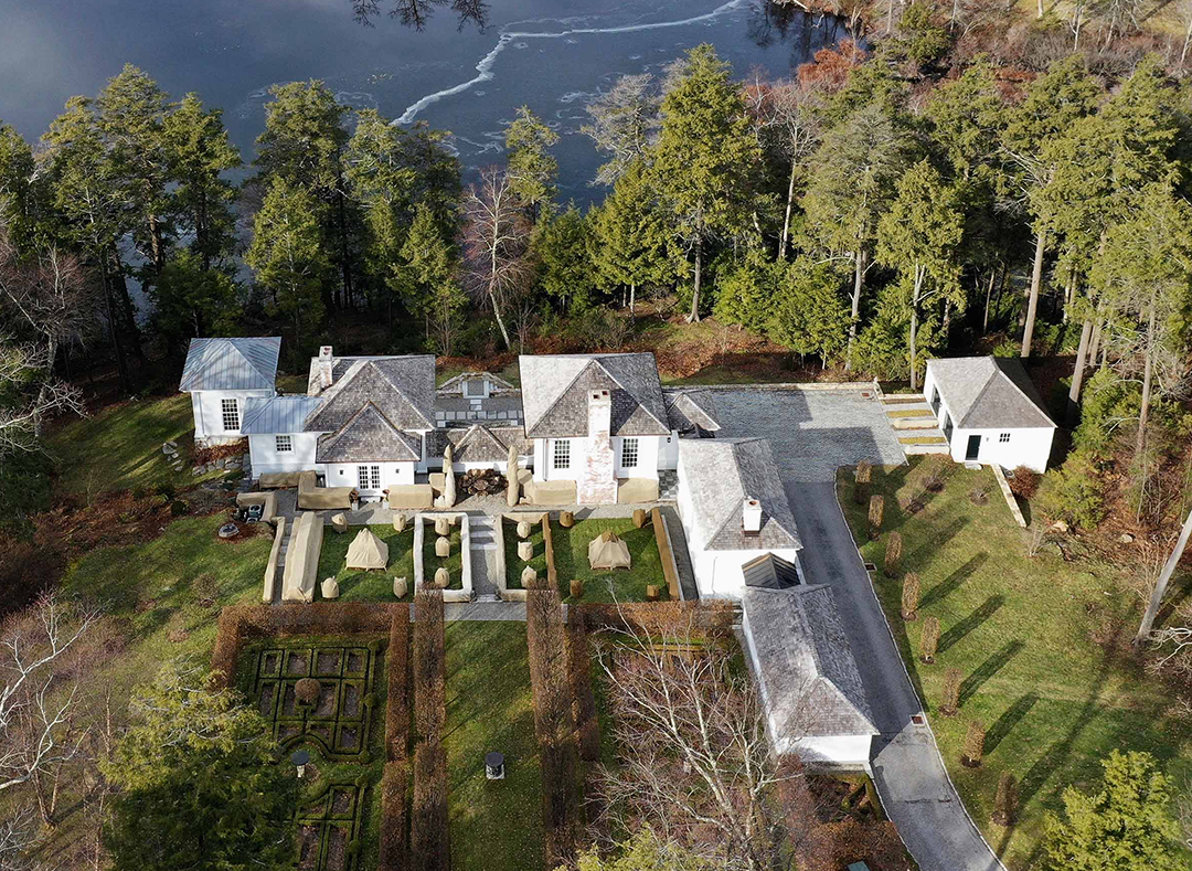 In Kent, the country home of architect and designer Robert Couturier has just hit the market for $5.9 million. Gracing the cover of CTC&G in 2011, the nearly 15-acre property kicks off with formal parterre gardens with maze-like hedges, an allée of ornamental trees and a private, winding drive that leads to a cobblestone courtyard. There you’ll find two distinct dwellings, starting with the pristine white main house that opens onto a dramatic entrance hall with a slate checkboard floor and a 14-foot ceiling.