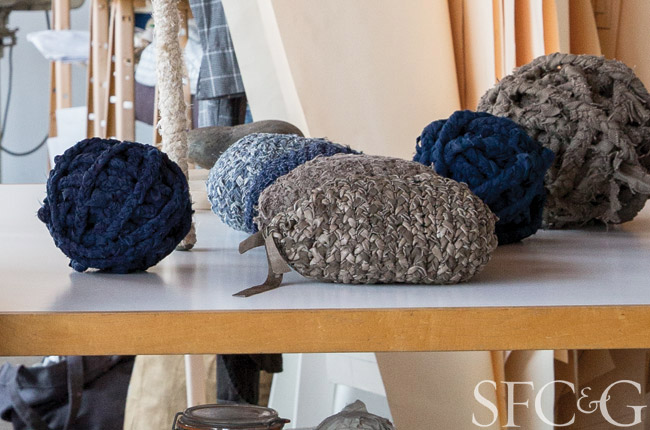 The textiles he uses embody another pillar of Alexis’ philosophy: re-use. Although his oeuvre is wide-ranging—his enormous crocheted denim rugs were displayed in the former Levi’s flagship on Union Square, and local interior designer Steven Volpe commissions him to produce baskets for clients—Alexis only utilizes fabric scraps. It is his way of addressing the waste so prevalent in the garment industry.