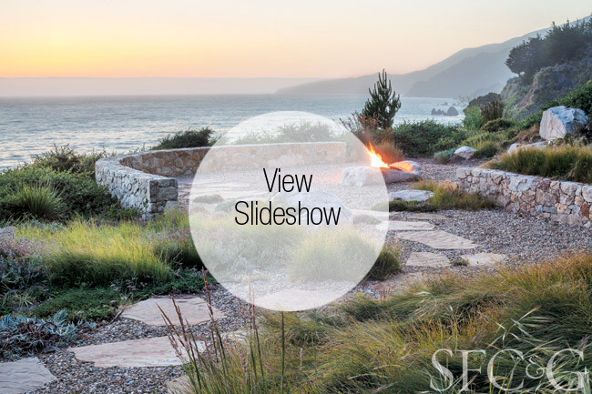 Bernard Trainor’s first impression of the land surrounding a house on a stretch of Big Sur coast was that it felt dispirited and inhospitable: A harsh climate of drenching rains, mists and howling winds had taken its toll and left the property fractured from its stunning Pacific view. Responding to the sound of crashing waves, his intuition told him to simply uncover a sense of place. “I totally respect nature—it has humbled me on many occasions,” he says, “but I’m never shy about intervening when necessary. There’s a subtle yet significant difference between manipulating a site and unleashing its instincts.”