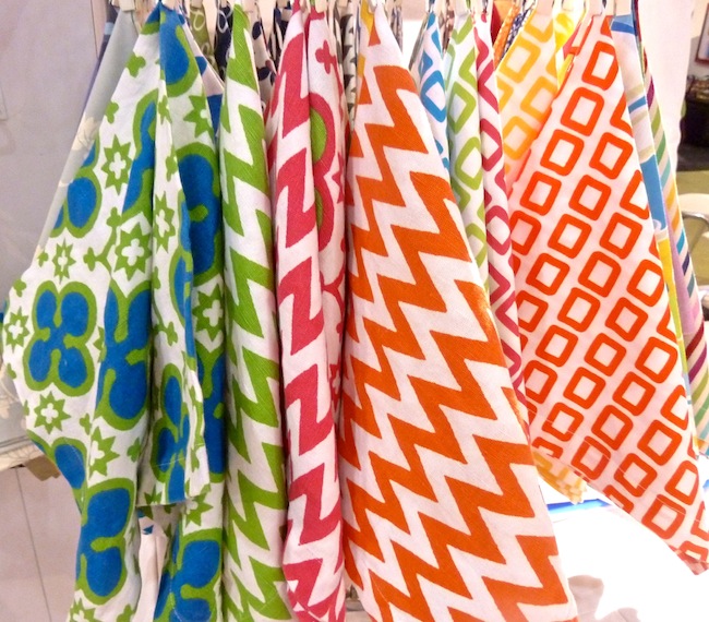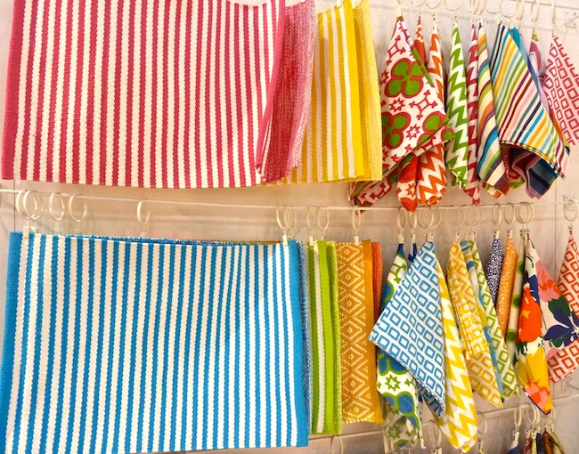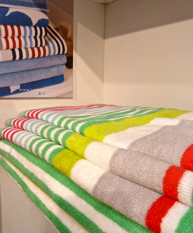 A new discovery was the beautiful Jean-Vier line of French linens. In the village of Saint Pée sur Nivelle in the Basque Country, their colorful brand renews the art of the region’s traditional linen weaving. Basque linen was originally used to protect cattle from the sun using large rectangles embroidered with seven blue, green or red colored stripes, symbolizing the traditional seven Basque provinces. Jean-Vier interprets these stripes today in beautiful colorful renditions.