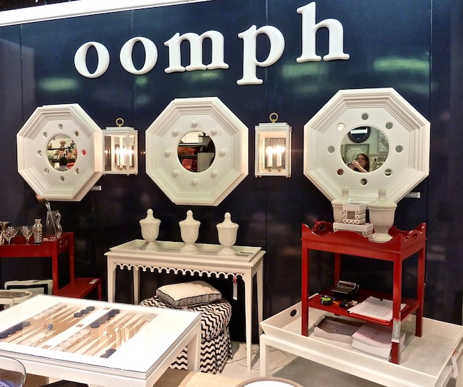 Local Connecticut company Oomph presented their upscale tailored version of color in their handsome navy lacquered booth, with a patriotic made in America vibe.
