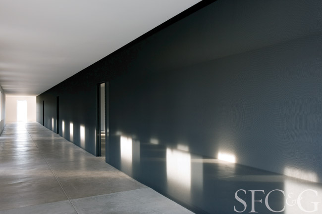 In the new 10,000-square-foot, U-shaped structure, Irwin will install black and white scrim walls and apply gradated, tinted films to its 40 windows. By creating a progression of light to dark in the east wing and dark to light in west, Irwin notes, “The effect of the windows is