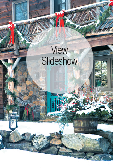A love of log homes and interior design isn’t the only thing Rebecca shares with her mother. She inherited Beverly’s passion for home restoration, entertaining for a crowd and decorating for the holidays. Every year, soon after Thanksgiving, Ellsley takes delivery of a 13-foot tree that holds pride of place in her great room, which was part of the original log home. And out come the boxes of ornaments. “There is nothing very religious on my tree,” she notes. “All of my ornaments have faces. And they are big—four to six inches at least.” Among her favorites: the Naked Emperor and Hiking Bear, both of which she bought at a Westport crafts show. The designer layers on multiple strands of lights-—anywhere from 30 to 40 strings—plus feather boas and garlands. “I do a lot of natural decorations,” she explains. “It fits with the rustic setting.”