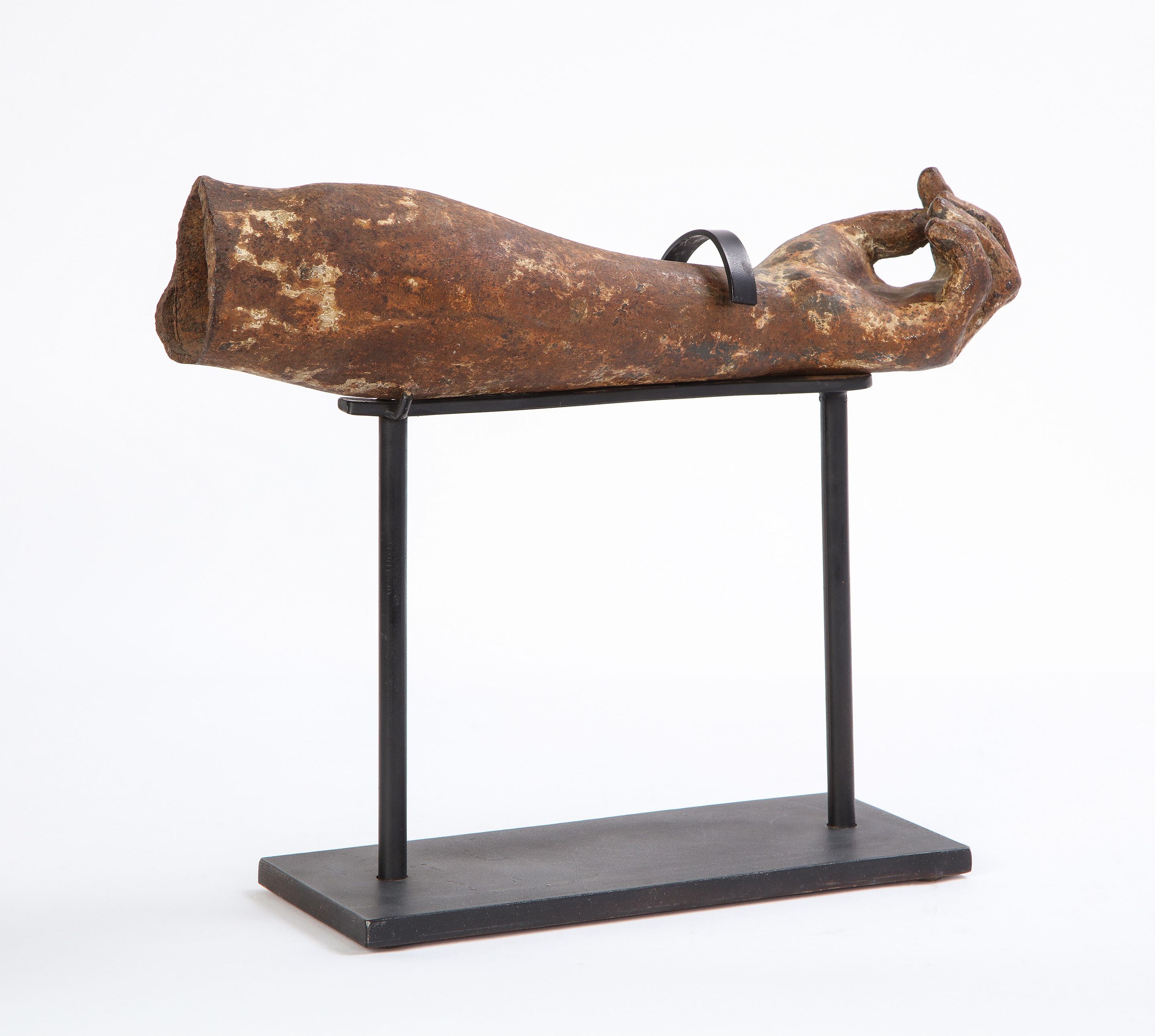 Metal Arm Fragment on Metal Stand, 20th Century Dating back to the 20th Century, this sculptural fragment of a cast, patinated metal arm makes for a great conversation starter. A beautiful centerpiece, the lifelike sculpture recalls Neoclassical themes of Roman art with a modern, industrial twist. $3,000, 1stdibs.com.