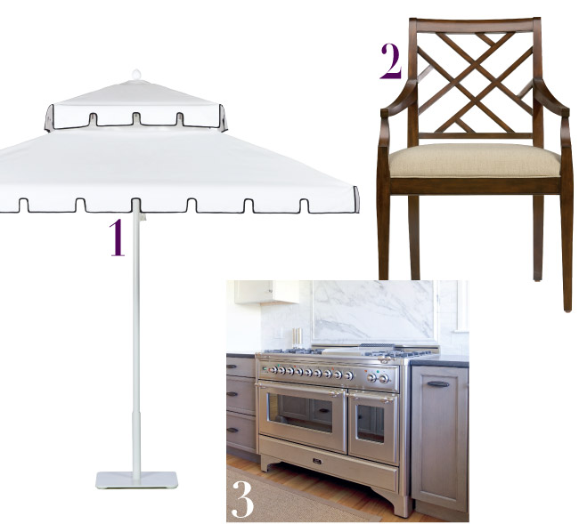 1. SANTA BARBARA UMBRELLA’s new DoubleDecker square umbrella brings classic black tie styling poolside. Canopy in Regatta Whitecap with black trim keyhole valance. Frame in powder coated white aluminum. Available in more than 100 color combinations. Santa Barbara Umbrella I 800.919.9464.