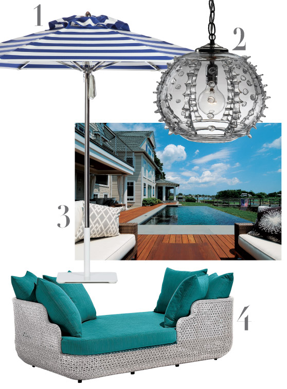 1. SANTA BARBARA UMBRELLA celebrates American classics this spring with an all-new Paseo Hexagonal umbrella, shown in a Regatta Navy Stripe canopy with mirror polish stainless steel frame. Available in more than 100 color combinations. Santa Barbara Umbrella I 800.919.9464.