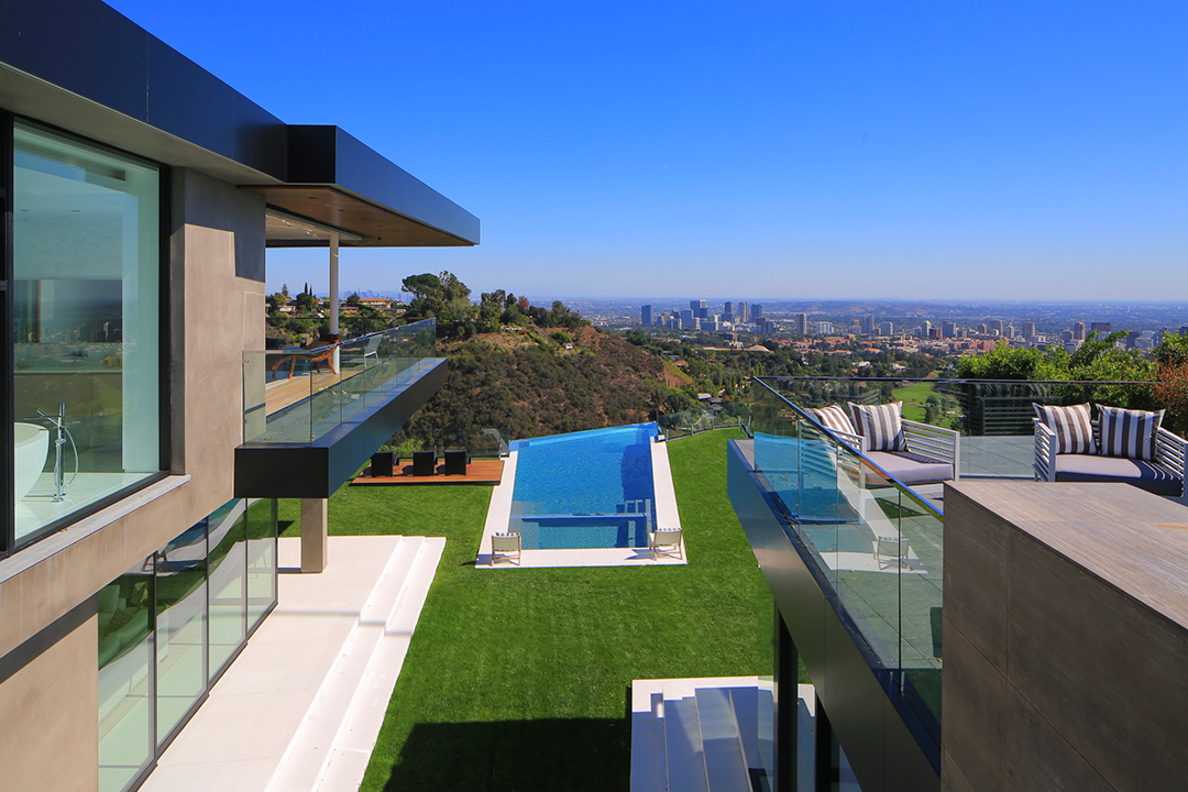 Upstairs, the 2,200-square-foot master suite was no doubt designed to spoil lucky owners. It boasts a bar, sitting room, dual bathrooms, multiple closets, and city to ocean views from an 800-square-foot terrace. While it may be hard to pry himself from the sumptuous space, Noah has plenty to enjoy outside as well. In the beautifully landscaped backyard, the 62-foot long pool takes living on the edge literally since it slightly hangs over a cliff. Unusual and impressive details like this seem to be what celebrities crave.