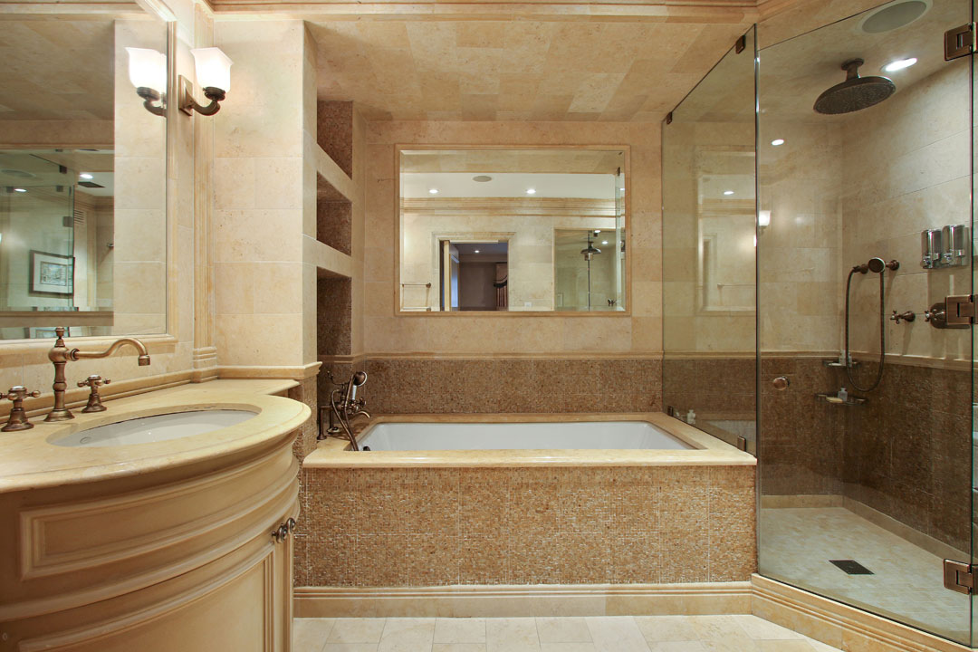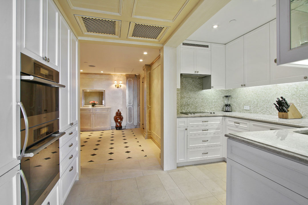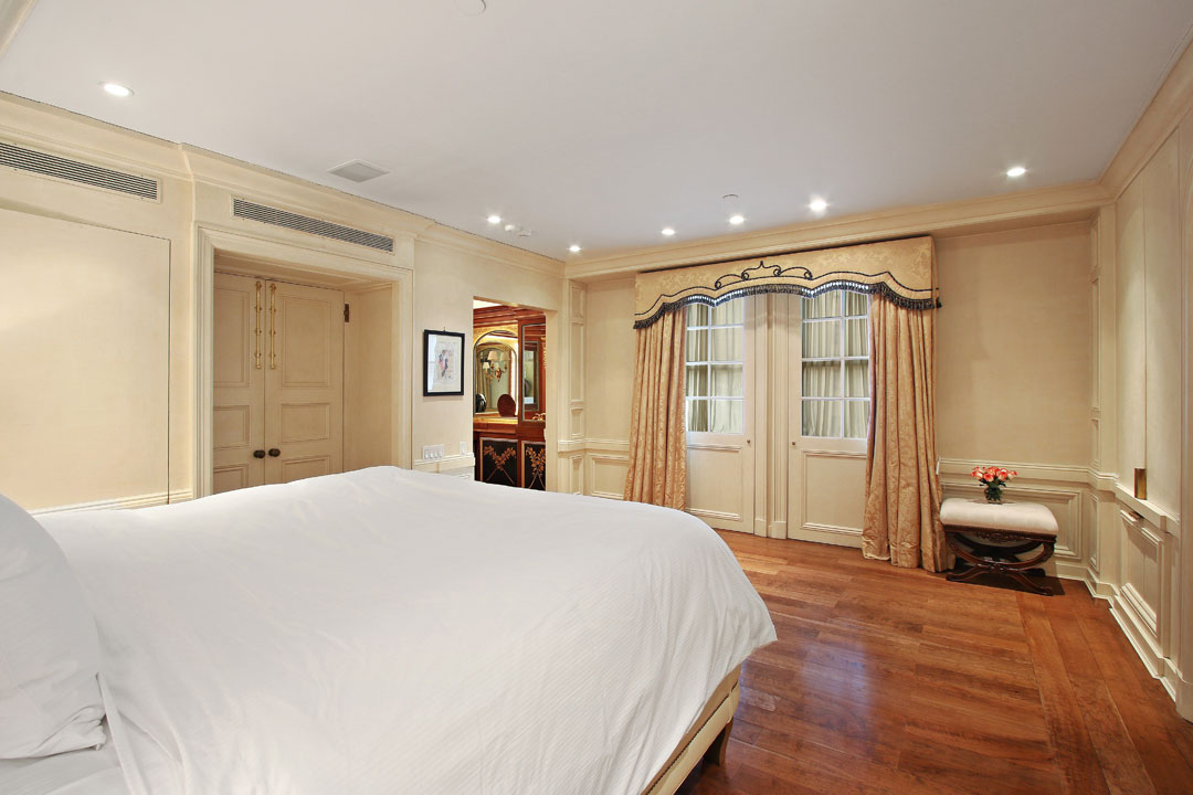 The grandly-scaled home offers a direct view of Central Park through large picture windows as well as a walnut-paneled office, 28-foot-wide living room, professionally appointed kitchen and two master-sized bedroom suites. Besides the piano, other details from the couple still remain in the apartment including hidden shelving in the living room and Iman’s custom paneled dressing room. They also converted the master bathroom into a panic room, but that has since been converted back.