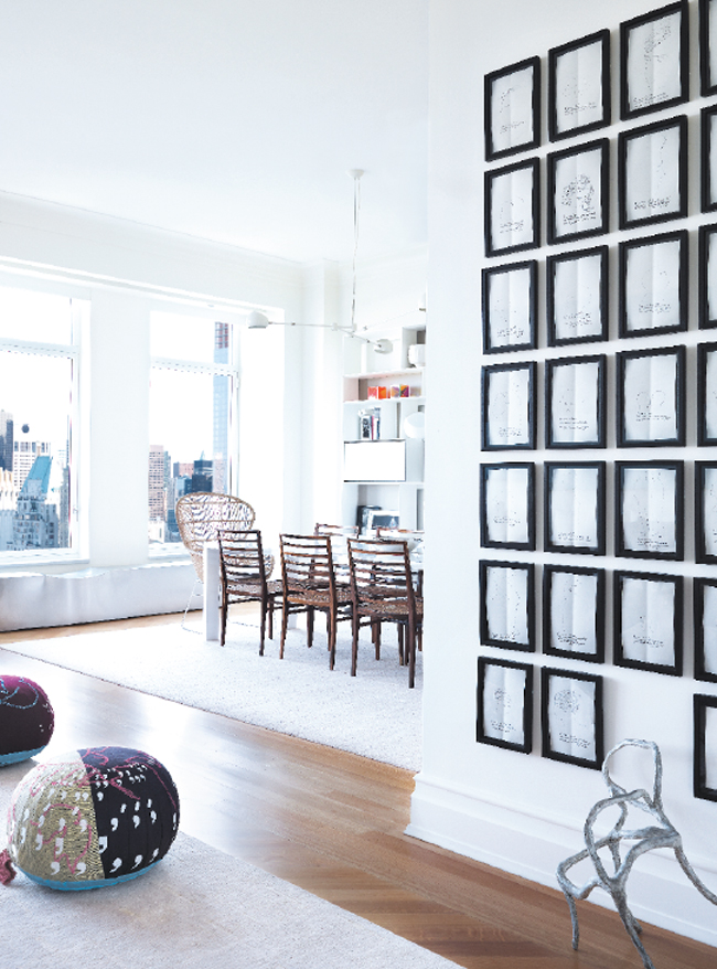 Artful Arrangements | On a wall that opens onto the living and dining areas, Andy Warhol’s Alphabet Suite, one of five in existence, hangs above a sculpture by Brazilian artist Marcia Grostein.