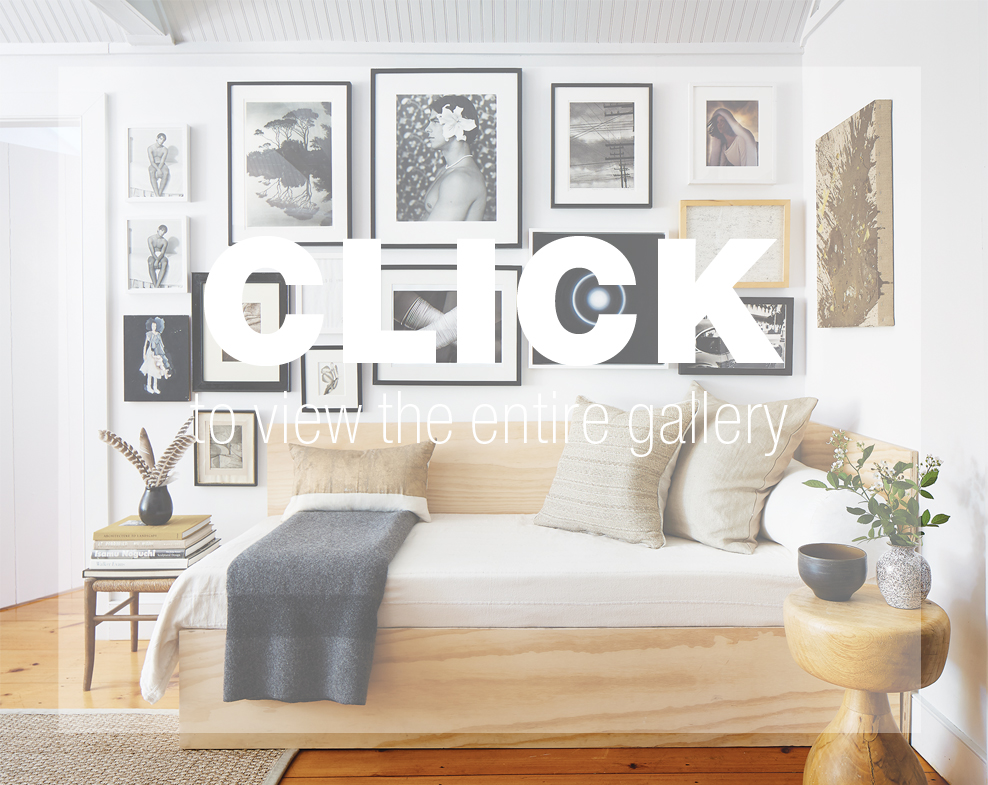 Adding to the mix, textiles and pottery collections are “scattered throughout the house,” with some framed art casually propped on the floor, partly for lack of wall space but also because, Ban says, “Not everything must be hung.” The house’s skylit central living room, probably the oldest part of the structure, features a cathedral ceiling, which Ban has punctuated with a large Japanese paper globe lantern. Major furnishings include a sand-colored sofa and “cocoa-mustardy” linen armchairs; the built-in plywood daybed was a weekend project for Ban and a visiting friend—inspired, the decorator says, by the work of minimalist sculptor and furniture designer Donald Judd.