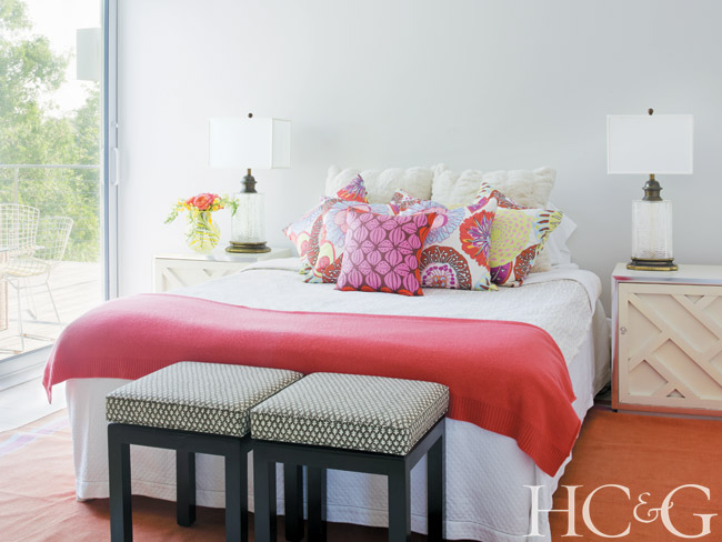 The guest room’s accent pillows are from All Modern and the throw is from ABC Carpet & Home.