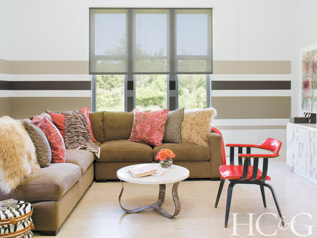 A shingled Sagaponack traditional has been turned into a sleek, multilevel contemporary home, an appropriate canvas for designer Tara Seawright’s modern way of looking at things.