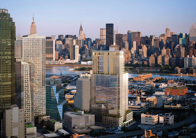 Far west of Midtown’s dueling skyscrapers, on the long-vacant Hudson Yards site, Related Companies is planning to erect the first of two tilting office towers that will resemble a giant pair of scissors. Located near the northern terminus of the High Line Park, at West 30th Street and 10th Avenue, the two tapered office towers will stand 50 stories and 1,000 feet, making the complex the largest commercial development in the city once it’s completed in 2015. (Luxury retailer Coach is reported to be the anchor tenant.) Kohn Pedersen Fox Associates is the project’s architect. —Barbara Thau