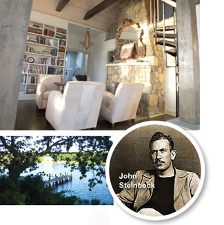 A cabin with its own story also graces the property. When the Cozy Cabins in Wainscott were being carted away, Steinbeck bought one on the spot to be moved to his homestead to accommodate his expanding family. Surprises were a Steinbeck specialty, it turns out, notably the pool that he built to surprise his wife as a birthday present upon their return from a European trip.