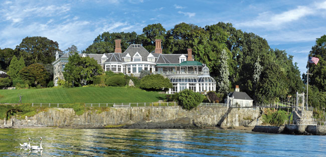 More Deeds awards for Greenwich: The priciest listing on the market looks to be Point of View, a gorgeous waterfront antique sited in posh Field Point Park. Built in 1903, the 20,777-square-foot estate has an old-fashioned kind of elegance, including a 35-foot-high, marbled-floor entrance hall, a semi-circular, window-walled living room designed to showcase the panoramic water views and, coolest of all, a ballroom with a mosaic floor that lowers to transform into an indoor swimming pool. The 4.26-acre lot features 340 feet of private shoreline as well as an outdoor pool and guesthouse. It’s listed with Joseph Barbieri of Sotheby’s International Realty in Greenwich. (203) 618-3112.