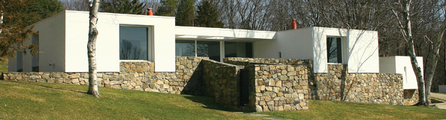 While our state is famous for its Olde New England homes (“pre-war” in Connecticut often means pre-Revolutionary War), many masters of the Modern movement built here too, especially in New Canaan, where Philip Johnson lived, along with other Harvard Five architects. This beauty, called Stillman II, was designed by Bauhaus architect Marcel Breuer, who built several homes in the Litchfield Hills. On 9.5 private acres, the home features the best of Breuer: natural materials, including local stone, brick floors, stucco walls and, everywhere, clean lines and loads of glass to let the outside in. Featured in House & Garden in 1967, it was recently featured again in The World of Interiors after its current owners finished a careful restoration. It is listed with Roger Saucy of Klemm Real Estate in Washington Depot. (203) 788-7032.