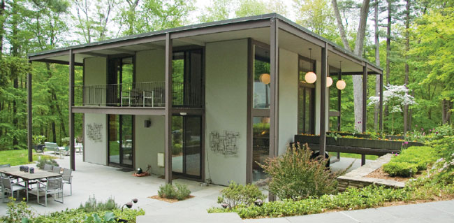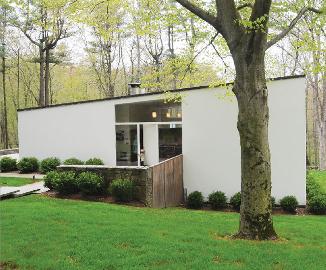 In 1957, modern architect Hugh Smallen built this house for himself and his family. Featured on this year’s New Canaan Historical Society’s Modern House Tour, the home is now one of a cluster of three Smallen-designed homes along wooded Chichester Road, close to Philip Johnson’s Glass House. Like the Glass House, it embraces exterior spaces, via a five bay-window wall looking onto a grand terrace. Current owners restored Smallen’s original great room, dining space and four bedrooms. It’s listed with Inger Stringfellow of William Pitt Sotheby’s International Realty in New Canaan. (203) 321-9361.