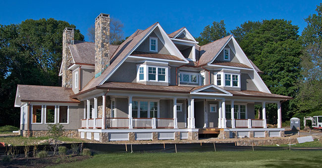 It’s rare to find a newly constructed home in Westport’s Compo Beach neighborhood. As with any coastal enclave, real estate is so precious that buildable lots are hard to come by. Rarer still are offerings around Westport’s Minute Man Hill, which is both coastal and convenient: Walk five minutes in either direction and you’re at Longshore Country Club or the beach; drive 10 minutes and you’re at the train station or on Interstate 95. And when we say new construction, we mean it: The paint’s still drying inside this 7,600-square-foot home that features 10-foot coffered ceilings, five fireplaces, a master suite with water views, a balcony and a sitting room, along with five additional bedrooms, each with its own bathroom. On the outside, we’re wowed by the wraparound veranda, fieldstone fireplace and pool. It’s listed with Deirdre Andreoli, (203) 856-7479, and Elayne Landau, (203) 722-3101, of Westport Beach & Country Homes.