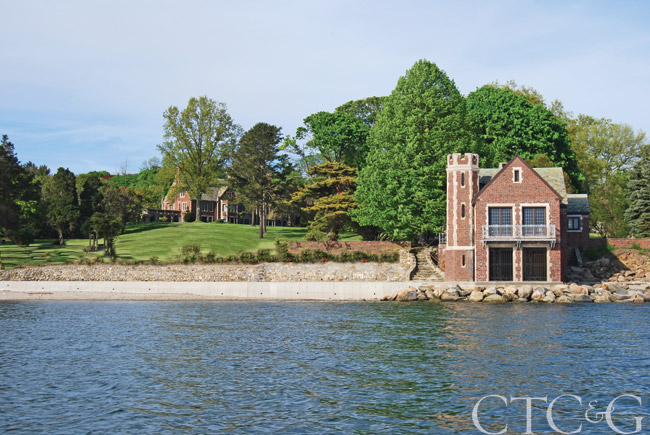 The highest-priced home ever to hit the town-of-Fairfield market—and, currently, the second-most expensive listing in the state—is a $62 million property along Sasco Hill Road with views over Long Island Sound. Called Sasco Point, this 20-acre property (including 1,850 feet of water frontage) once belonged to a Lehman Brothers’ COO who suffered a bit during the now-in-our-rear-view-mirror recession. The sale of the estate was delayed due to some tricky tax issues (we probably should mention here the annual tax bill is estimated at more than $500,000), but with that cleared up, it’s now advertised as “the most magnificent waterfront estate on the Connecticut Gold Coast.” Supporting that claim are gorgeous grounds and gardens, starting at a charming Gothic-Revival boathouse with stone steps leading down to the private sandy beach, moving on to the tennis courts for a quick set or two before setting up a lounge chair in the pavilion overlooking the pool. Further diversions: a post-and-beam barn with stables, a five-bedroom guesthouse and a Victorian-style gatehouse. The circa-1923, 17,000-square-foot, gargoyle-adorned brick mansion also impresses, offering 10 bedrooms and 15 bathrooms. Victoria Fingelly of Nicholas Fingelly Real Estate has the listing.
