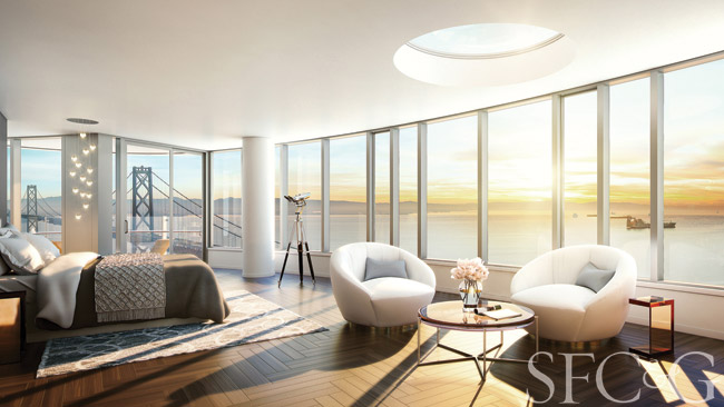 Lumina, a new high-rise development in the Transbay District, is offering the city’s largest condominium. The 14,000-square-foot penthouse has an additional 1,200 square feet of outdoor terrace and features a 20-foot wall of curvilinear glass. It is listed at $49 million with Gregg Lynn of Sotheby’s. Lumina anticipates completion by early 2017. luminasf.com