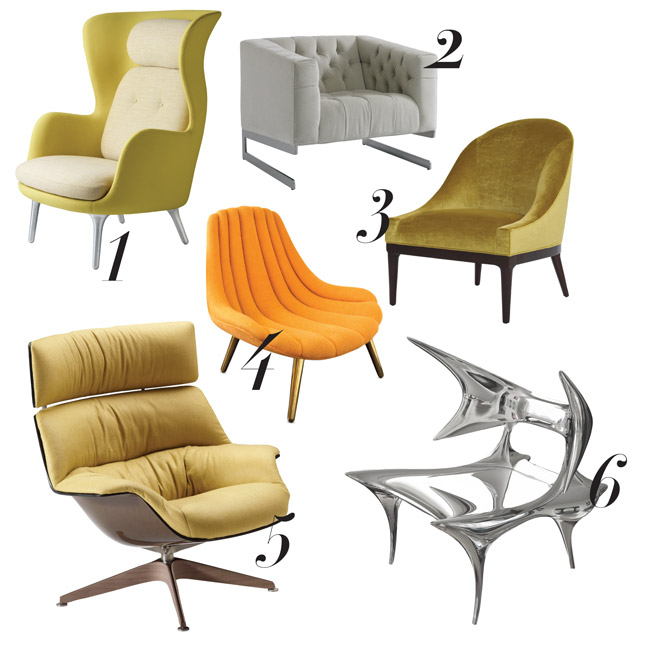 5. The brainchild of renowned French designer Jean-Marie Massaud, the Coach chair and ottoman (not shown) features an ecologically friendly frame made from composite flax fiber and organic resin. $12,785 (including ottoman), at Avenue Road, 145 W. 28th St., NYC, 212-453-9880.