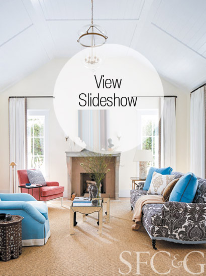 Upstairs, the master suite is painted in muted hues. “They wanted a quiet, calm oasis overlooking the trees,” says Ayres, who focused on integrating family pieces—a Baker bed and upholstered headboard; a dresser that was stripped and refinished—while enhancing the space with bespoke Italian bed linens and throws by Sue Fisher King. “Although there are classic design elements and materials, it has an approachable feel at the same time,” explains Linsteadt. “I think it strikes a nice balance.”