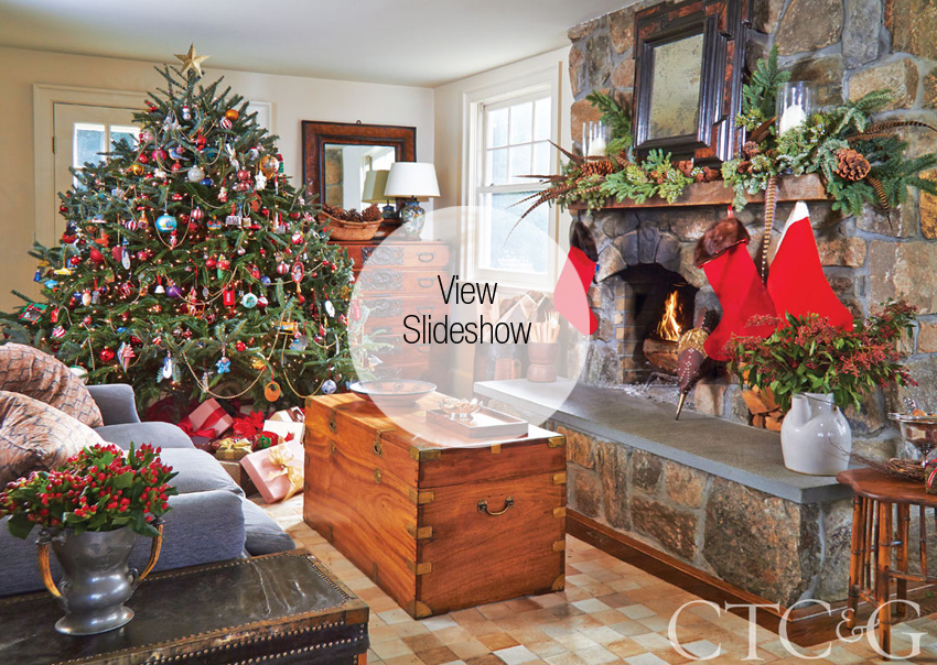 Built by the Marks family, which made its fortune selling willow trees to the government for prosthetics during the Civil War, the house has retained much of its antique charm. “It has a beautiful staircase, wonderful wainscoting, even the original fir and pine floors in some areas,” Hilderbrand says. “I think an antique Colonial is the perfect setting for Christmas decorations.”