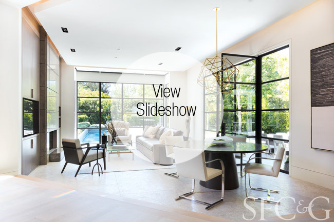 Tucked into a serene, wooded enclave, a quietly grand Atherton residence embodies Coco Chanel’s maxim: “Luxury must be comfortable, otherwise it is not luxury.” The home’s minimal, elegant interiors, created by San Francisco designer Matthew Leverone, unfold in tranquil colors, simple lines and refined details. And while its easy elegance make it comfortable and livable for a family of five, Leverone notes of his clients, “They had a very strong direction and sense of style, and wanted a very clean look.” With their sensibility in mind, he also looked to the home’s transcendent setting for inspiration: A formal garden designed by noted landscape architect Andrea Cochran. The garden features an enchanting series of living spaces, and Leverone and the client’s vision began with bringing the outside in.