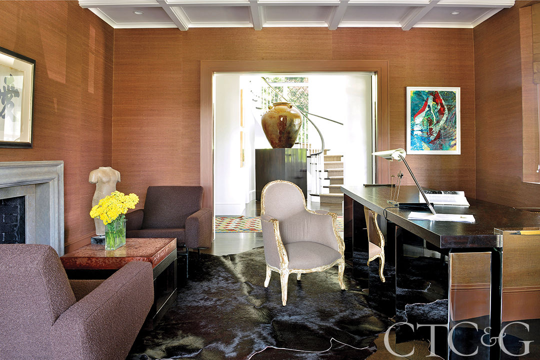 Along with bringing out the best in every table, lamp and artifact was the primary goal of creating the right environment for a couple with two young children. Having purchased an ailing Victorian in Greenwich’s desirable Belle Haven community in 2011 for the clichéd reason of “good bones,” the owners hoped to preserve the architectural integrity on the outside while updating the interiors. To accomplish the former, they turned to architect James Margeotes. “James has this deep knowledge of Victorians and he worked really hard to save things like the original stonework while dealing with structural problems,” says the wife, who then relied on builders Doron Sabag and Jim Hoffman of SBP Homes to finesse the details.