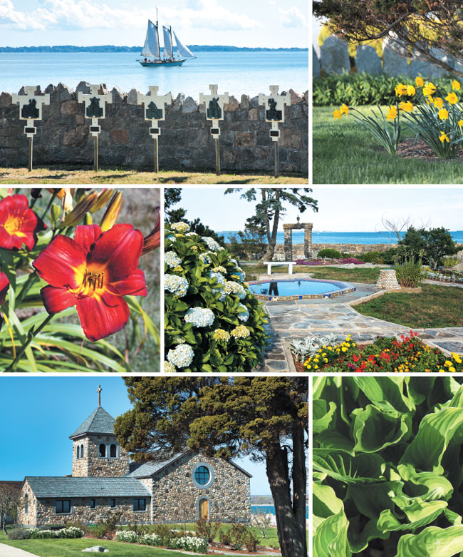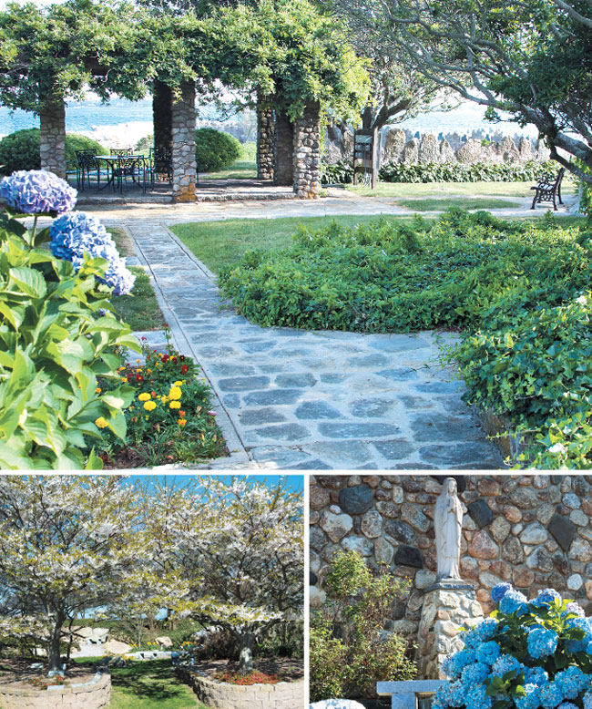 For the past 14 years, St. Edmund’s director of facilities, David Santos, has been coaxing things back to life in the garden. Santos comes up with the patterns, generally favoring themes of red, white and blue, which play well with the many hydrangeas on the property. He does his work with donated plants, two helpers and a crew of volunteers. Each fall, using the center’s kitchen, Santos turns the island’s fruits into preserves, which are all sold in the shop. Among these are Roo-Berry: strawberry and rhubarb preserves; Enders Blue: a blueberry preserve; and Smelly Jelly: a garlic-onion glaze.